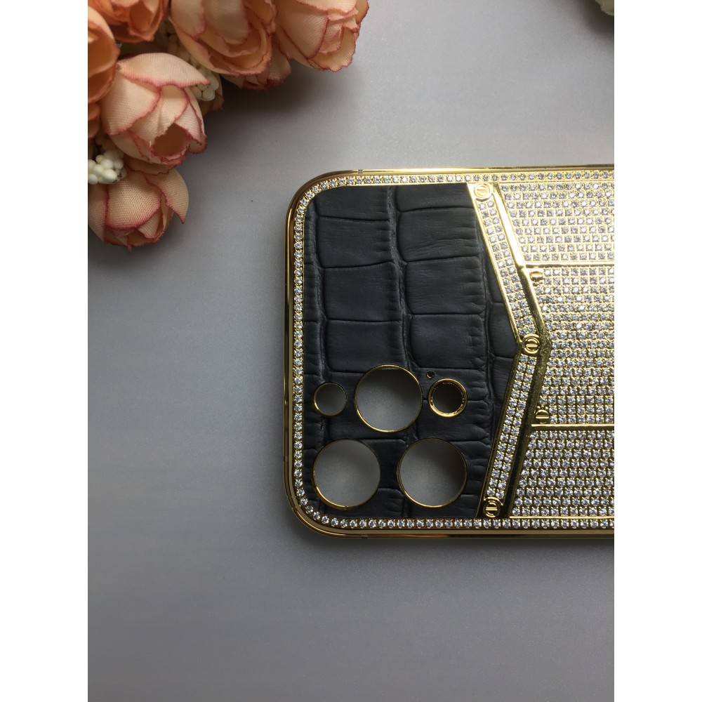 Custom Logo Set With Bling Diamonds High Quality Leather Phone Replacement Housing For iPhone Series 13Pro Max