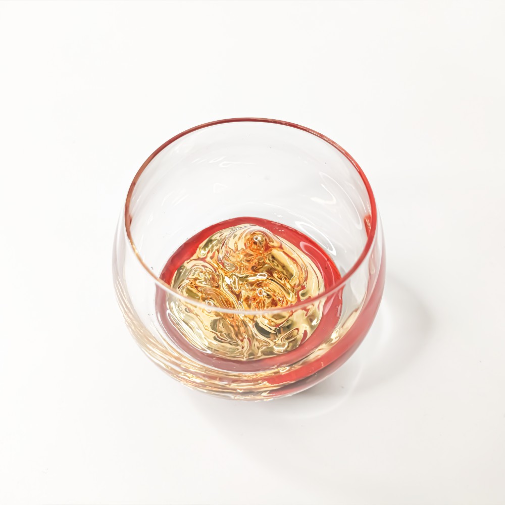 The design of this glass is unique, with a three-dimensional gold mountain inside the bottle, which looks luxurious. The glass is made of high-quality glass, with high heat resistance than ordinary glass. In the production process, we also added some new techniques and crafts to make the glass look more delicate.